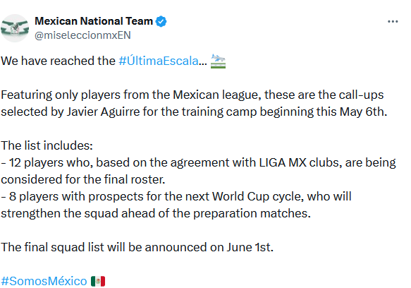 The latest development, however, is less scandalous but still highlights ongoing concerns about how the process is managed. On Tuesday, the Mexican Football Federation released a list of 20 Liga MX-based players who will take part in a pre-World Cup training camp in Mexico City starting May 6. Of those selected, 12 are already assured of places in the final World Cup squad.